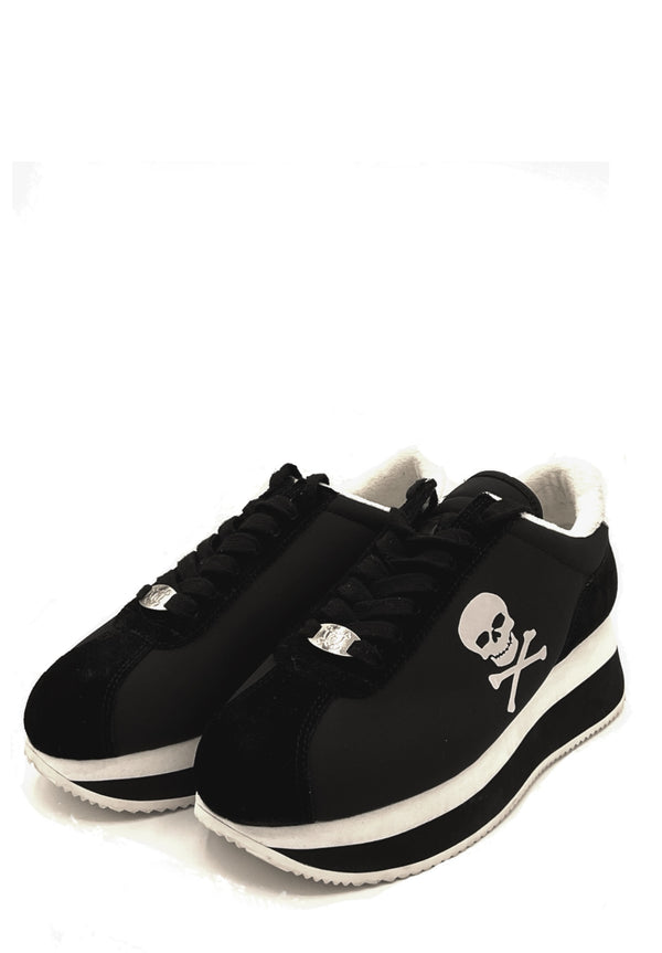 Black nylon + vegan suede White ridged rubber outsole Skully printed sidewall graphic True to size ......but what's wrong with it? -Nothing! This is a first iteration of the Breakdown...